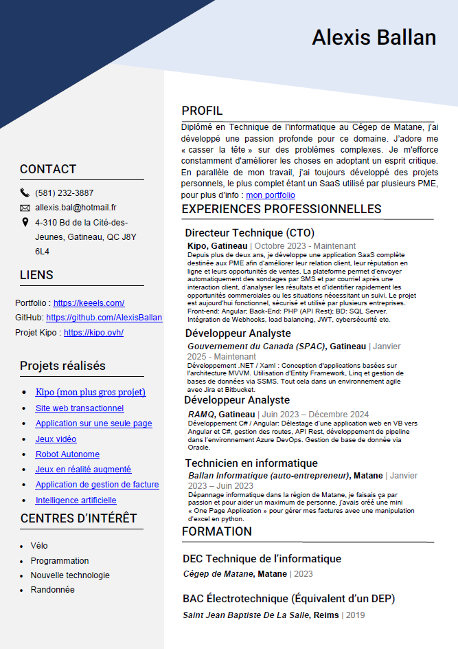 Voici mon Curriculum Vitae :